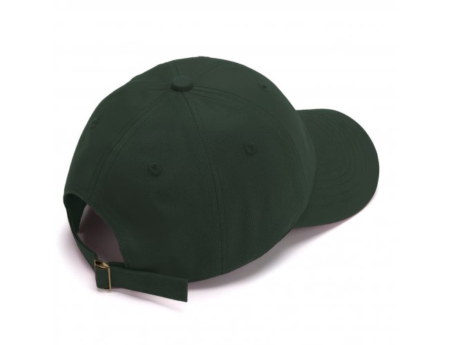 Boné no estilo Dad Hat, com logo e viés. Acabamento interno com ilhós e fecho de tecido com fivela de metal.