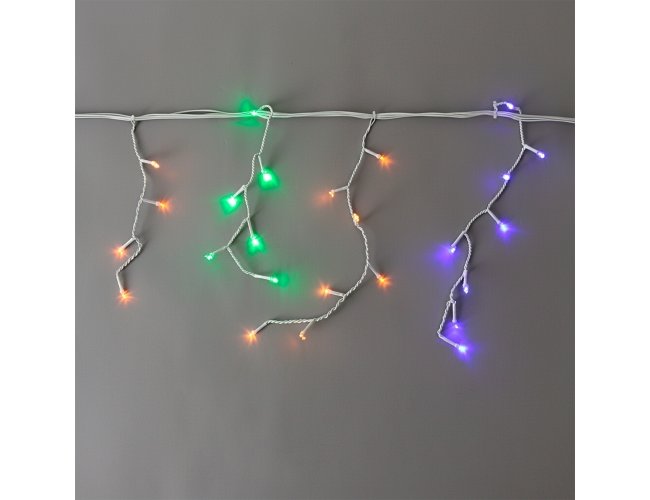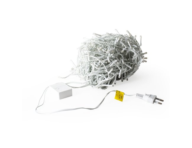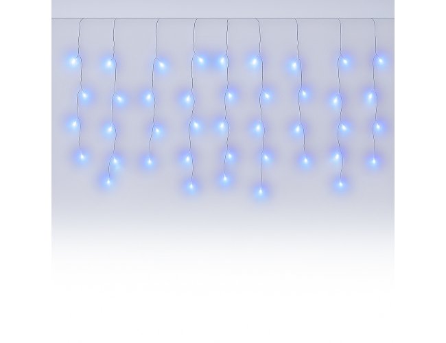 Pisca-pisca em formato de cascata com 400 LEDs distribuídos em aproximadamente 10 metros de cabo de alimentação. Dispõe de 8 modos de iluminação controláveis por painel disponível na extensão do cabo, além de plug para conexão a outros conjuntos compatíveis.