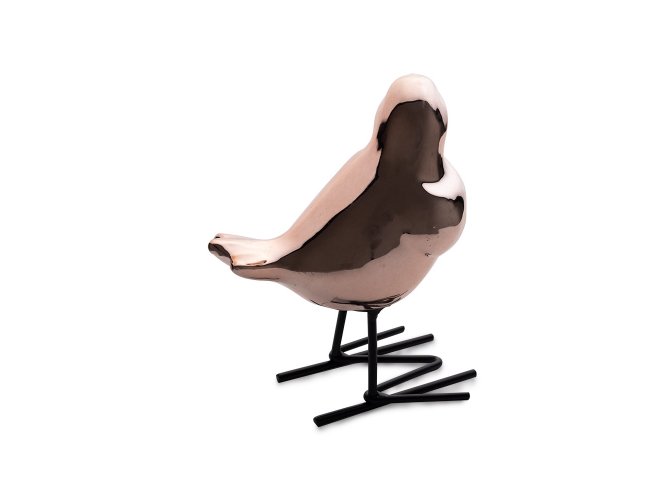 Enfeite decorativo de Porcelana em formato de Passarinho com pés de ferro.