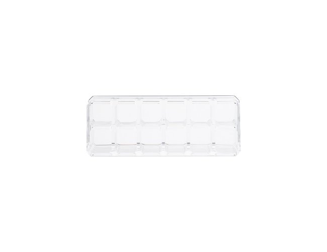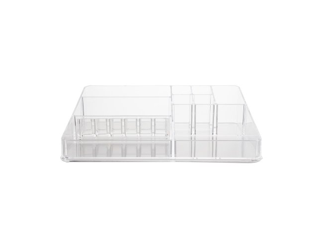 Organizador em acrílico grande com 9 divisórias e organizador em acrílico pequeno com 12 divisórias.