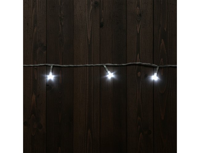 Pisca-pisca com iluminação em LED e voltagem de 127V. Conta com 100 lâmpadas distribuídas ao longo aproximadamente 10 metros de cabo, além de botão de acionamento de oito modos de efeitos de luz.