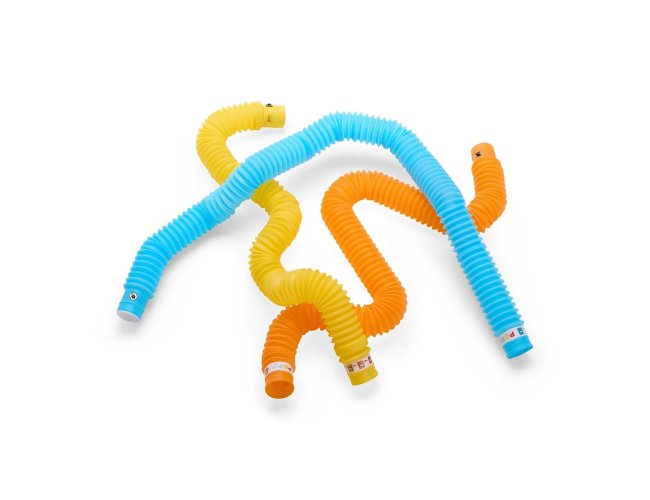 Tubo sanfonado em plástico com três níveis de iluminação em LED e rosqueamento que permite a conexão com outros tubos compatíveis.